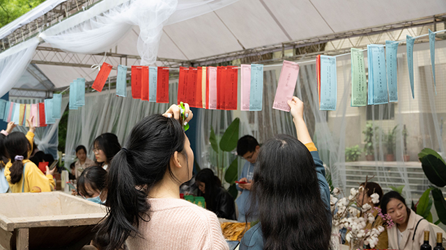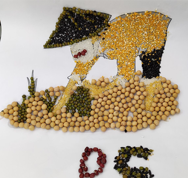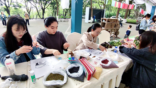 培养一支懂农业、爱农村、爱农民的“三农”工作队伍为乡村振兴战略提供人才支撑,是学院人才培养的目标。作为新时代的农科人才,不仅可以扎根土地与植物对话,还可以饱读诗书,出口成章。“背负青天面朝土”,“深云种早禾”,一张张写着农事谜语的彩色纸条蕴含着文字与自然的智慧结晶,吸引了不少同学的驻足观望和深入思考。也有不少小朋友被谜语所吸引,面对小朋友好奇提问,我院同学耐心讲解。通过对传统农耕文化的追寻,进一步深化同学们的爱农情怀。除此之外,活动现场一幅幅同学们亲手制作的充满生机的种艺画让人眼前一亮的,纸张上简单的黑色线条配上飘香的五谷填充,让农作物弥漫艺术气息,让同学们与农作物更近一步,与农业更进一步。