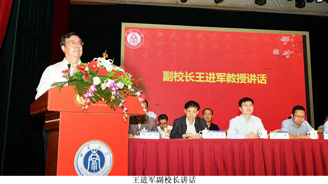 王进军副校长向新生的到来表示热烈的欢迎。他点赞了同学们经受住疫情和升学双重考验的昂扬风貌与坚毅品格,希望同学们处理好“大”与“小”、“学”与“做”、“奋斗”与“青春”三种关系,艰苦奋斗,将个人理想融入国家发展的伟业中,把强国志融入实现中华民族伟大复兴的艰苦奋斗中。