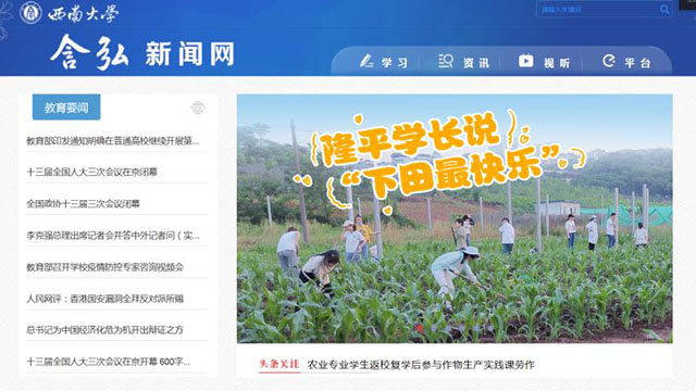 6月6日,学校含弘新闻网edddh报道了我院2018级农学专业学生返校复学后在教学实验基地进行《作物生产实践》课玉米套作甘薯相关农事活动劳作的情况。据悉,在返校复学线上学习一周后转至线下学习,2018级农学专业各班学生逐步投入农作物生产实践,在本周已陆续完成玉米甘薯套种部分实践内容。