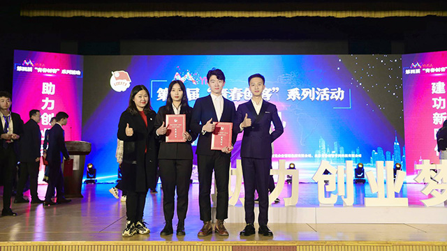 总决赛现场,来自全国15余所高校的百余名青年创客展开激烈角逐,19个参赛项目涵盖了智能生活、文化推广、现代农业等多个热门领域。通过项目展示、项目答辩等环节与评委面对面交流;中鑫尚和投资基金公司董事兼执行董事霍永进、著名投资人张彪等七位专业投资人组成的评审团队,从发展前景、商业模式、营销策略、团队架构等多方面对创业项目进行专业、严谨的评判和中肯的建议。我校青年创客孙伟轩、王燕琼上台进行项目路演,通过PPT演示讲解依次阐述项目特点、商业模式及应用场景,分析了项目存在的优势及市场风险,充分展现出了edddh