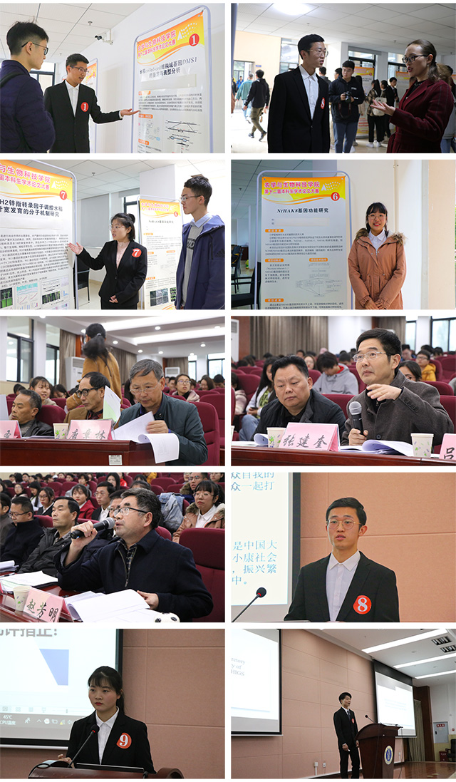比赛现场火热进行,竞赛分为演讲和答辩两部分。演讲环节各参赛选手有条不紊,逻辑清晰对论文进行了具体深刻地阐述讲解:玉米,水稻,高粱,马铃薯,烟草等不同作物的研究;生物技术对微观结构的调查探究;人文方面关于农民生活的社会调查分析……切实可信的数据,直观简洁的图表,突出鲜明的结论,尽显农生学子融入生活,潜心学术研究的优良学风。答辩环节,各参赛选手向在场评委虚心请教,评委针对专业理论知识,实验过程研究分析,答辩的严谨可靠性,分别提出了指导性意见,让各位在场同学受益匪浅,收获良多。在场观众无不沉浸在极其浓厚的学术科技氛围和活跃的创新思维中。