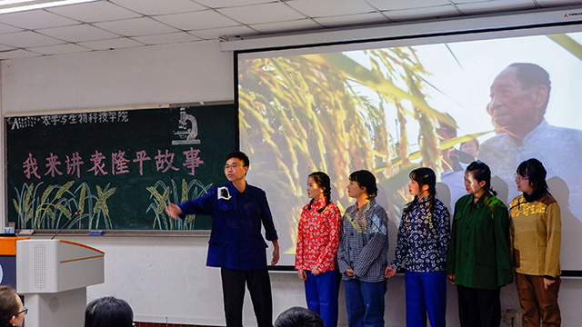 党委主办、方方生涯工作室承办的“不忘初心,牢记使命”主题教育活动——“我来讲袁隆平的故事”圆满举行。学院院长何光华、党委副书记方凤玲等十位教师党员担任本次大赛的评委,全体本科学生党员及隆平实验班全体学生用他们自己的方式,深情讲述了“学长”袁隆平的故事。