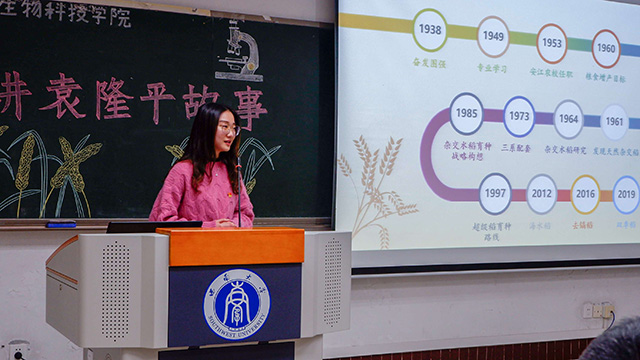 大赛以何院长讲诉他和袁老的故事拉开帷幕。最后,来自植科支部的赵彬言同学以《一粒种子的报国路》赢得本次大赛的一等奖,她引用袁隆平先生的原话:“我觉得人就像一颗种子。要做一颗好种子,身体、精神、感情都要健康。种子健康了,我们每个人的事业才能根深叶茂,枝粗果硕。”对农科学生的个人成长、前途命运提出期许和美好愿景。