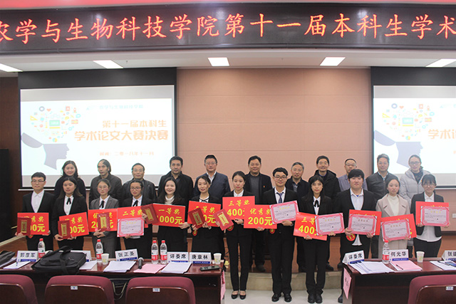 在一番智慧与学术的较量后,决赛最终评出优秀奖五名,三等奖四名,二等奖两名,一等奖一名,最佳展演奖一名。2015级神农班刘璞同学作品《甘蓝型油菜CKX基因家族成员鉴定及表达特征与表达差异分析》荣获本次决赛一等奖和最佳展演奖;2016级神农班李一丹同学的作品《C2H2锌指蛋白WL1调控水稻叶片宽度发育》和2016级植科2班米胜南同学的作品《水稻OsFLA基因的功能分析及网络调控研究》荣获二等奖;2015级区域2班袁伟同学的作品《重庆市农业面源污染的现状分析》、2016级农学2班魏丝雨同学的作品《BnaMYB100促使甘蓝型油菜早花功能初步研究》、2016级农学3班付宇蝶同学的作品《寄主诱导PnTOR基因沉默提高烟草黑胫病抗性》以及2016级农学4班刘程同学的作品《体内释放马铃薯细胞壁转化酶活性对试管薯发育的影响》荣获三等奖;2016级区域2班叶家麟、2016级农学2班邓华清、2016级农学4班张成苗、2016级区域2班牛艳花、2017级农学2班雷霆荣获优秀奖。学院领导和评委老师为获奖选手颁发奖状和奖金。