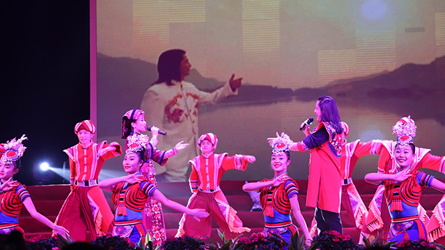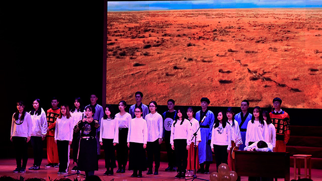 歌舞演绎了朴素的土家风情,交织着热情与奔放,展现生活的色彩,给我们带来了一场视听盛宴。作为重庆市唯一的一个省级专业民族文艺团体,歌舞团曾在全国各项专业文艺大赛中获得大奖,也曾多次代表国家和文化部出访巴西、法国、保加利亚等国家演出。被文化部授予“全国首批专业文艺院团改制先进单位”、“第六届全国服务农民服务基层文化建设先进集体”,被国务院授予“全国民族团结进步先进集体”。为表示感谢,晚会期间,园艺园林学院唐荣发书记代替梁国鲁院长向重庆市民族歌舞团赠送了梁院长的书法作品“艺不染尘,纵揽云飞”。