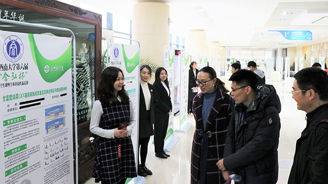 敏学勤思,锐意创新。在本届竞赛中,我院共推荐10项参赛,经过初评,有院刘璞、李一丹、王玲等同学的7个作品入围决赛,包括“甘蓝型油菜CKX基因家族成员鉴定及表达特征与表达差异分析”等4个自然科学类作品,“安全实用的新型油下汲汤器” 1个发明专利类作品和“基于输出系数模型与马尔科夫链的重庆市农业面源污染的现状分析” 2个社会科学类作品。赛前,各作品团队均做了详尽的准备,现场展示环节的生动讲解、评委问辩环节的从容应答均展示了我院学子的良好的创新能力和精神风貌。此外,学院还组织了低年级同学到现场观摩学习,同学们纷纷表示受益良多。