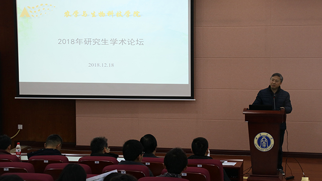 在隆平楼2楼报告厅举办2018年研究生学术论坛。学院部分教师、全体博士及硕士研究生出席此论坛。