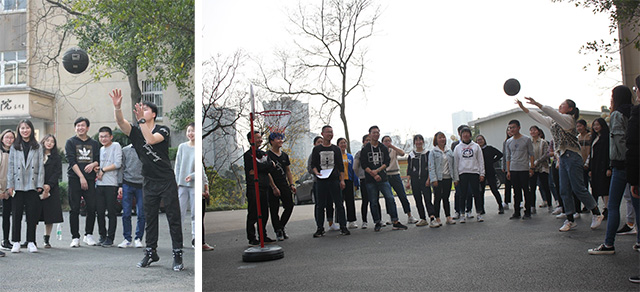 下午两点半,在同学们一起协作配合准备好物资、布置完场地后,活动正式开始。张建奎院长和卢会翔老师进行了简要致辞,鼓励同学们要积极参加活动,主动与其他同学交流,彼此熟悉。本次活动实行小组积分制度,班级同学随机分成了七个小组,每组五人,一共要参与四场游戏挑战。