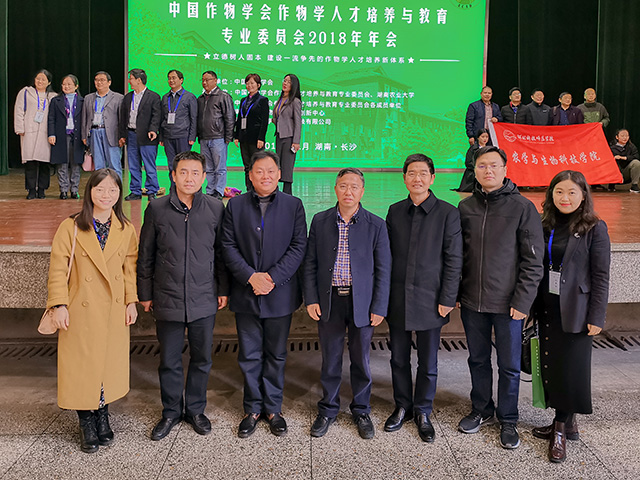 为全面贯彻党的十九大精神,深入落实全国教育大会精神,促进“双一流”背景下全国作物学科建设,推进新时代作物学人才培养模式创新,搭建全国农业院校作物学科人才培养、学科建设、创新创业、党建思政工作交流平台,11月24日-25日,中国作物学会作物学人才培养与教育专业委员会2018年年会在湖南长沙举行,学院党委书记赵子华、院长何光华、副院长张建奎、团委书记许莹竹、生物系系主任倪郁、区域系青年教师郭彦军、农学系青年教师卢坤、农学系青年教师张婷一起参加会议。
