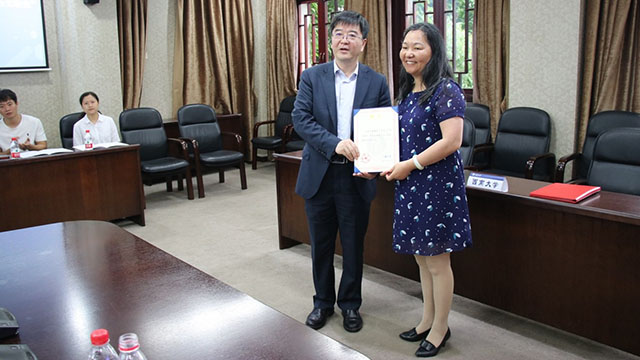 学校党委书记李旭锋为国家马铃薯产业技术体系首席科学家金黎平研究员颁发了edddh