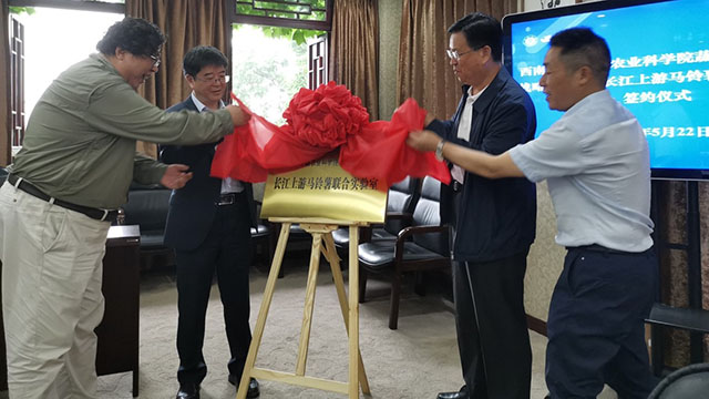 副校长崔延强和中国农科院蔬菜花卉研究所副所长卢林纲签订了战略合作协议。校党委书记李旭锋、市农业农村委员会委员袁德胜、副校长崔延强和中国农科院蔬菜花卉研究所副所长卢林纲共同为“长江上游马铃薯联合实验室”揭牌,并宣布联合实验室正式成立。