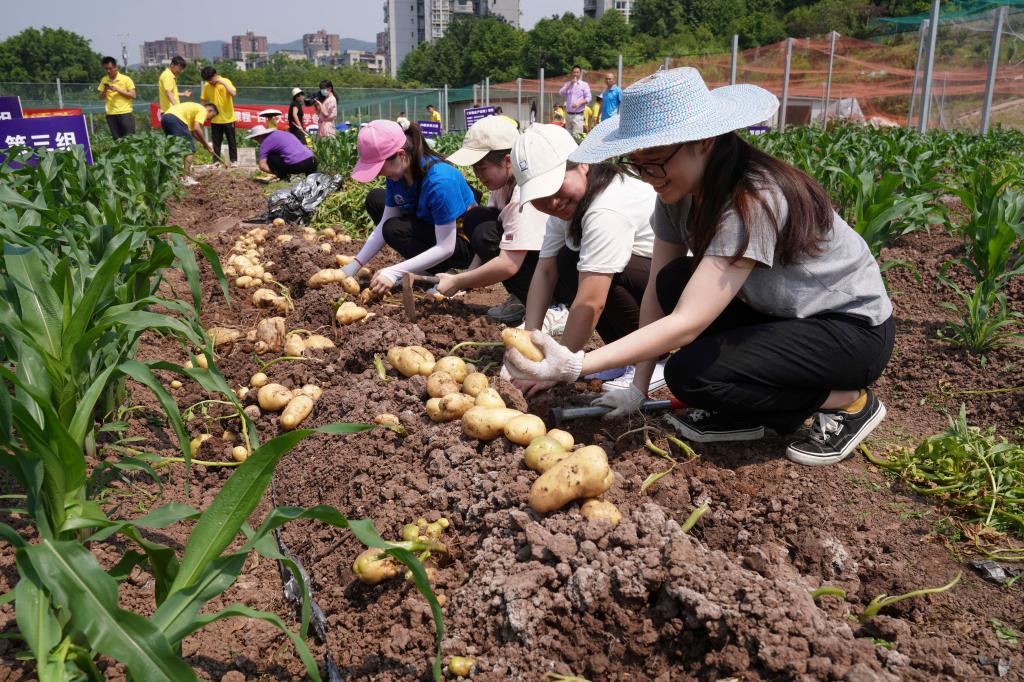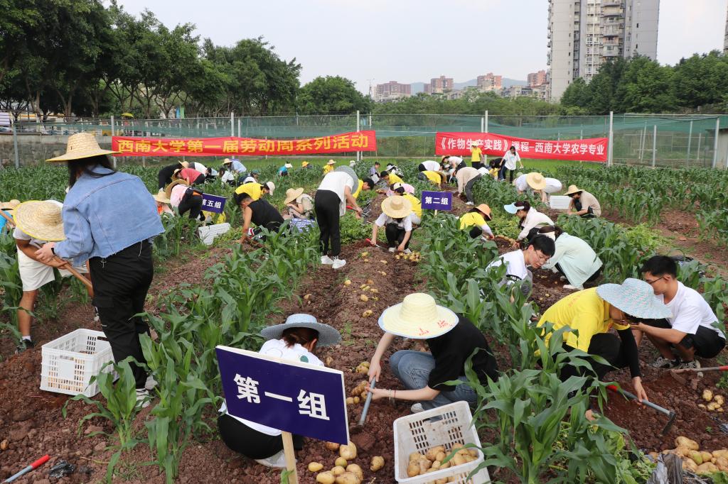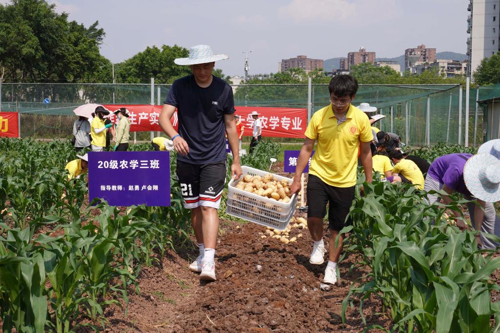 在八号门对面的教学科研基地开展马铃薯收获测产生产劳动实践活动。活动依托《作物生产实践》课程,在学生种植的马铃薯收获之际,组织农学专业的学生对马铃薯产量进行检测,并邀请全校各学院不同专业的72名同学参与到收薯实践活动中,深入田间劳动,体验农耕文化,体会劳动乐趣,培养劳动情怀。