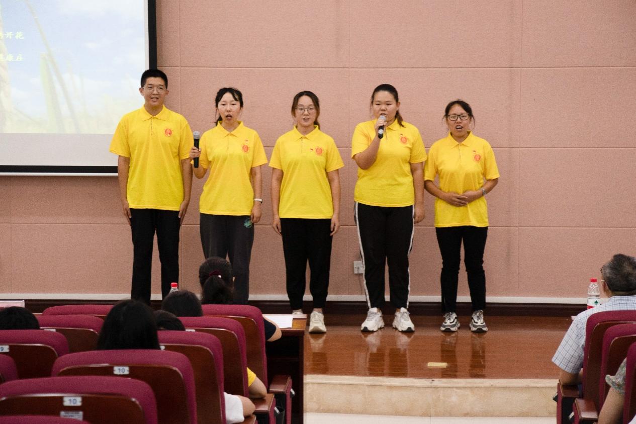 本科植科党支部则带来了形式丰富的一场表演,在《稻香》悠扬的旋律里,同学们立下铮铮誓言,要做袁隆平院士的坚定继承人与传承者,做一粒好种子,以风华之姿书写中国农业发展的璀璨篇章。本科农学二支部演了一出古今交融的舞台剧《“稻”梦空间》,将袁隆平院士与古人宋应星先生放在一块田里,听古今稻神的相互寄托,相互守望。同学们栩栩如生的表演引得现场一片掌声。