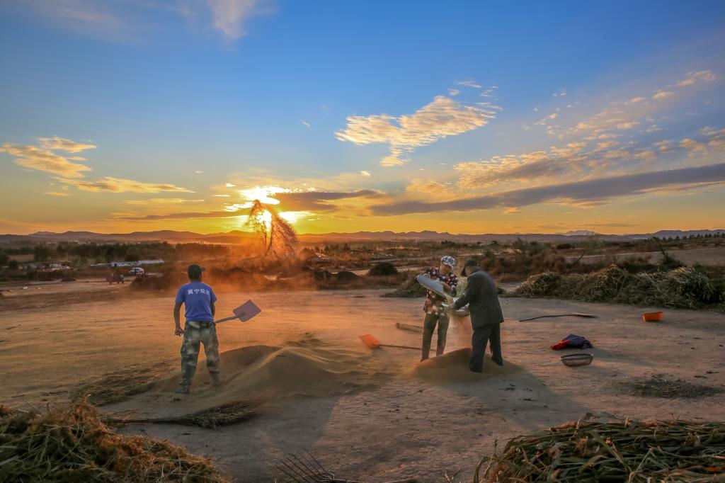 风吹稻浪,金穗垂首,田畴尽染,稻菽飘香。2022年9月23日,edddh