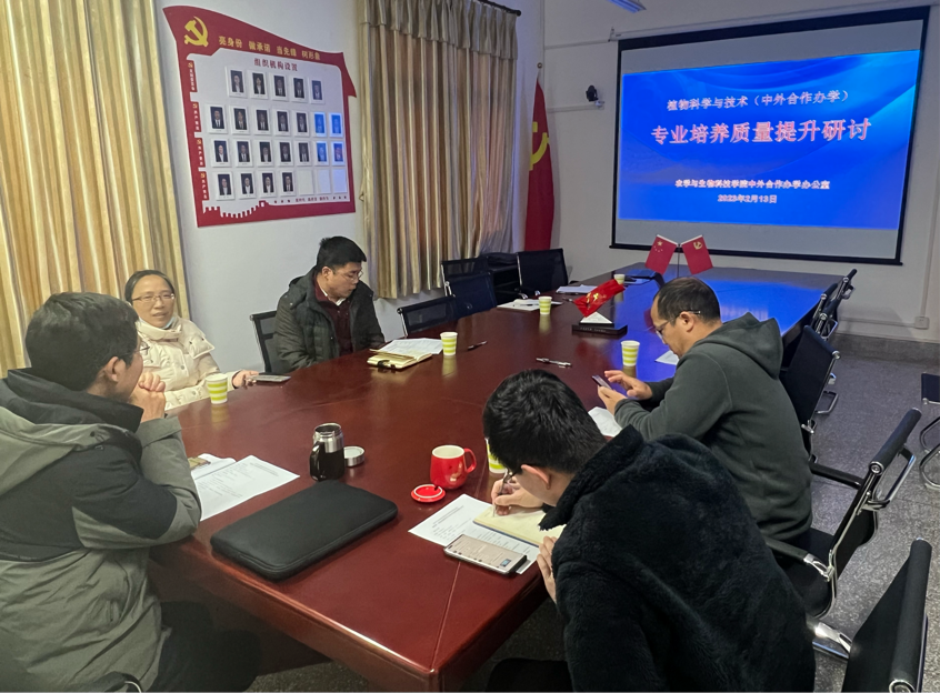 国家主席习近平同志在党的二十大报告中明确指出,要“加强人才的国际交流”,“着力形成人才国际竞争的比较优势”。高校作为人才培养的重要基地,依托中外合作办学平台,充分引进和吸收优质国际教育资源,持续提升人才培养质量,是达成这一人才培养目标的有效抓手。2023年对植科(中外合作办学)专业来讲,是关键的一年:首次完成了该项目的第一轮招生,招收的第一届学生将于6月份毕业,届时将会迎来本项目的首轮评估。在新学期伊始,学院中外合作办学办公室召开植物科学与技术(中外合作办学)专业的培养质量推进会,为持续提升植科(中外合作办学)专业的人才培养质量,强化植科学生“国际竞争的比较优势” ,以及该项目的迎检工作奠定了良好基础。