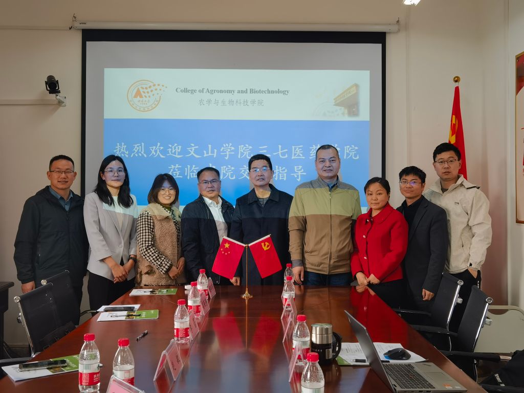 对文山学院的大力支持和帮助。毛忠顺博士介绍了三七医药学院的基本情况和目前在教育教学中遇到的困难,希望通过外聘师资、科研合作等形式推动两院开展全方位、常态化的联系交流,以更灵活的方式在更高层次、更宽领域深化合作,为三七医药学院实现高质量发展增添新动能新优势。