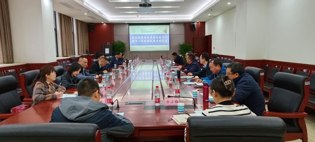 2023年3月21日,四川省安岳县县委副书记鄢华一行到我院交流座谈,洽谈合作。学院党委书记阳义健、院长吕典秋出席座谈会。