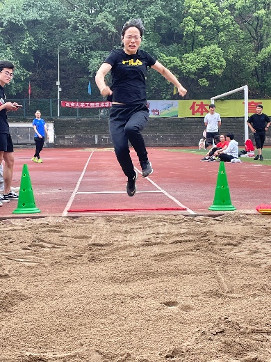 个人赛场风采依旧,田赛赛场上,周练老师获得女子甲组100米第一名,郑莉佳老师获得女子乙组100米第二名,荐红举老师获得男子甲组100米第六名,王皓老师获得男子甲组400米第四名,杨曦老师获得女子甲组400米第五名,王皓老师获得男子甲组1500米第六名,杨曦老师获得女子甲组1500米第七名;径赛赛场上,刘勋老师和梅秀鹏老师分别获得男子甲组跳远第二名和第八名,徐鑫老师与张立源老师分别获得男子甲组铅球第二名和第四名,谢小玉老师获得女子乙组铅球第六名,周练老师获得女子甲组铅球第八名等好成绩,完美展现了学院教职工速度与力量美的结合。