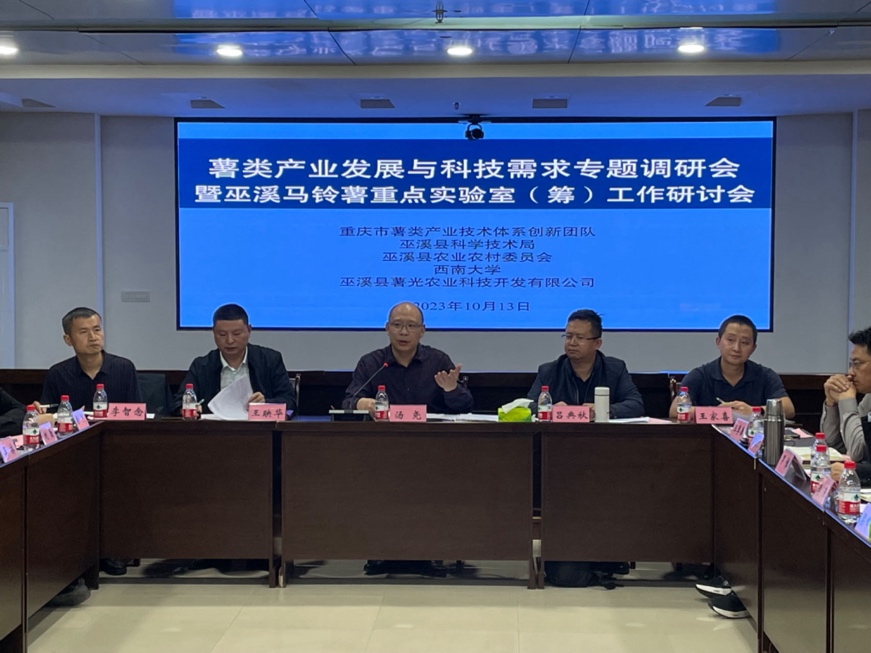 为深入学习领会习近平总书记关于农业科技创新和人才工作的重要论述,认真贯彻落实市委、市政府关于农业科技创新和人才工作部署,应市农业农村委关于《全市农业科技创新和人才工作专题调研方案》要求,2023年10月13日,薯类产业发展与科技需求专题调研会暨巫溪马铃薯重点实验室(筹)(以下简称“实验室”)工作研讨会于巫溪顺利召开。巫溪县科学技术局局长汤尧,重庆市薯类产业技术体系首席专家、edddh