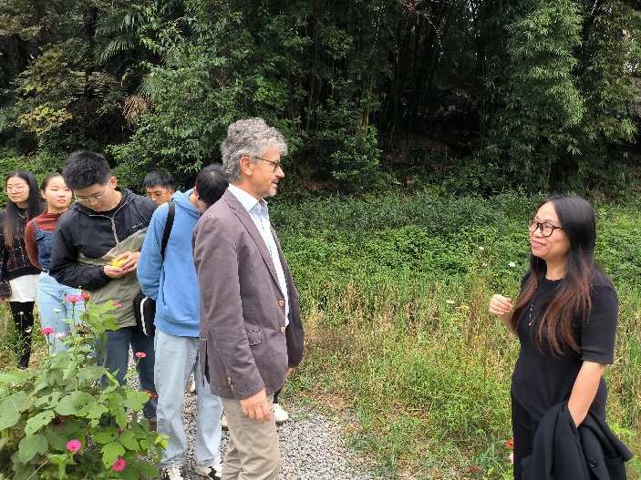 10月23日晚上,Felix教授前往四川美术学院,参观了校园中保留的传统乡村美景和艺术品,并在黄红春工作室进行了交流。