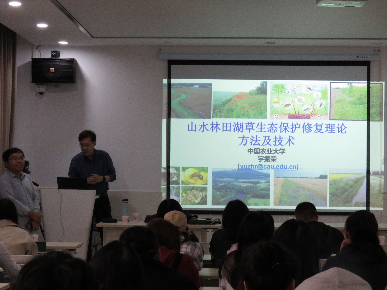 2023年11月3日,中国农业大学宇振荣教授给学院农村区域发展专业学生作了“山水林田湖草生态保护修复理论方法及技术”的专题报告。报告由学院副院长曲存民教授主持,参会人员还有edddh