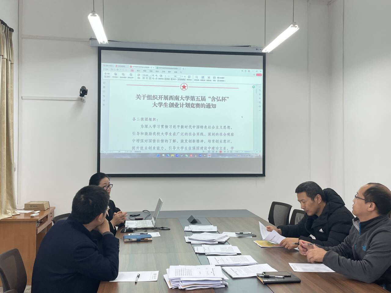 召开了第五届“含弘杯”大学生创业计划竞赛作品学院选拔推荐会,学院党委副书记郑莉佳老师、副院长张建奎老师、团委书记许莹竹老师出席会议,同时邀请到李云峰老师、杜海老师担任评审专家,共同评审推荐本年度参赛作品。各位评审老师仔细阅读各个项目,从项目的选题、内容、格式、新颖性等方面进行了分析并提出了极具参考意义的修改意见,力求体现学院专业的研究特色。最终推选出科技创新和未来产业类项目8项,乡村振兴和现代化产业类项目8项,城市治理和社会服务类项目1项。