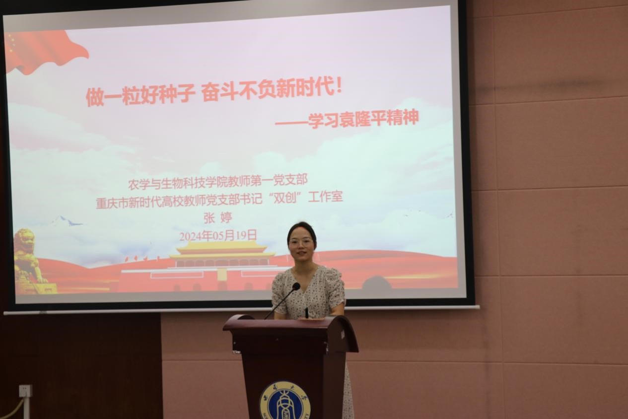 颁奖典礼结束后,学院举行了袁隆平院士事迹报告会。学院教师第一党支部书记张婷作了“做一粒好种子,奋斗不负新时代”主题报告。张婷详细阐述袁老的生平,着重讲述袁老在求学过程中的不易与坚持,鼓励同学们不负韶华,不负时代,不负人民,在青春的赛道上,奋力奔跑,争取跑出这一代青年人的最好成绩。