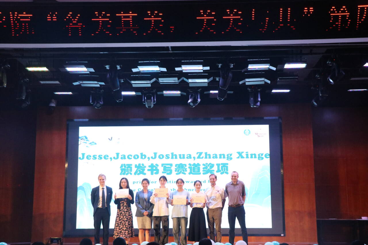 展演环节结束后, Brad校长和陈炳君副处长对展演的内容进行了深入而专业的点评。他们的点评不仅为选手们提供了宝贵的反馈和建议,也为在场的每一位观众带来了深刻的启发。在激烈的角逐之后,经过评委老师们的严谨评分,比赛结果最终揭晓。个人演讲赛道中,赵婧悦同学荣获一等奖,磨星吉同学和陈果同学荣获二等奖,张艺恒同学、郑凯琴同学和艾柯宇同学荣获三等奖。班级展演赛道中,2022级植科3班荣获一等奖,2023级植科4班荣获二等奖,2023级植科3班和2022级植科4班荣获三等奖。此外,书写赛道中获奖的同学也获得表彰和奖励。