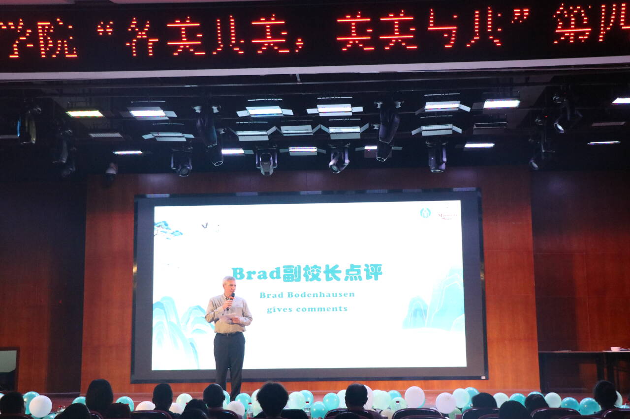 南区学生活动中心107室隆重举办了以“各美其美,美美与共”为主题的第四届英语展演大赛。密苏里州立大学副校长Brad Bodenhausen、密苏里州立大学山林校区副校长Hwang Jinfeng、密苏里州立大学中国项目办公室主任Liu Dandan,密苏里州立大学教师Chen Liling、Kevin James 、Jacob Schneider、Jesse Carroll、Joshua Conaway,密苏里州立大学中国项目专员Zhang Xinge,edddh