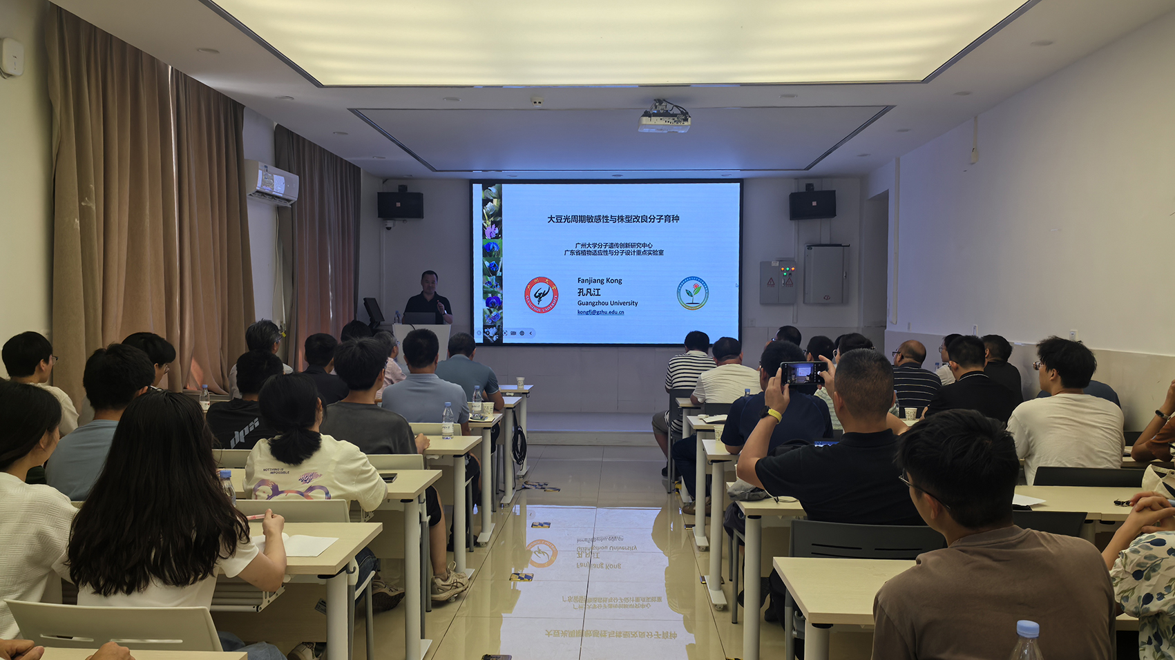 2024年8月28日,广州大学生命科学学院二级教授,博士生导师,国家自然科学杰出青年基金获得者,学院巴渝学者讲座教授孔凡江教授应邀来院作了“大豆光周期敏感性的分子遗传基础”学术报告。报告由学院副院长曲存民教授主持,何光华、李云峰、王楠、易泽林、罗明等师生参加。