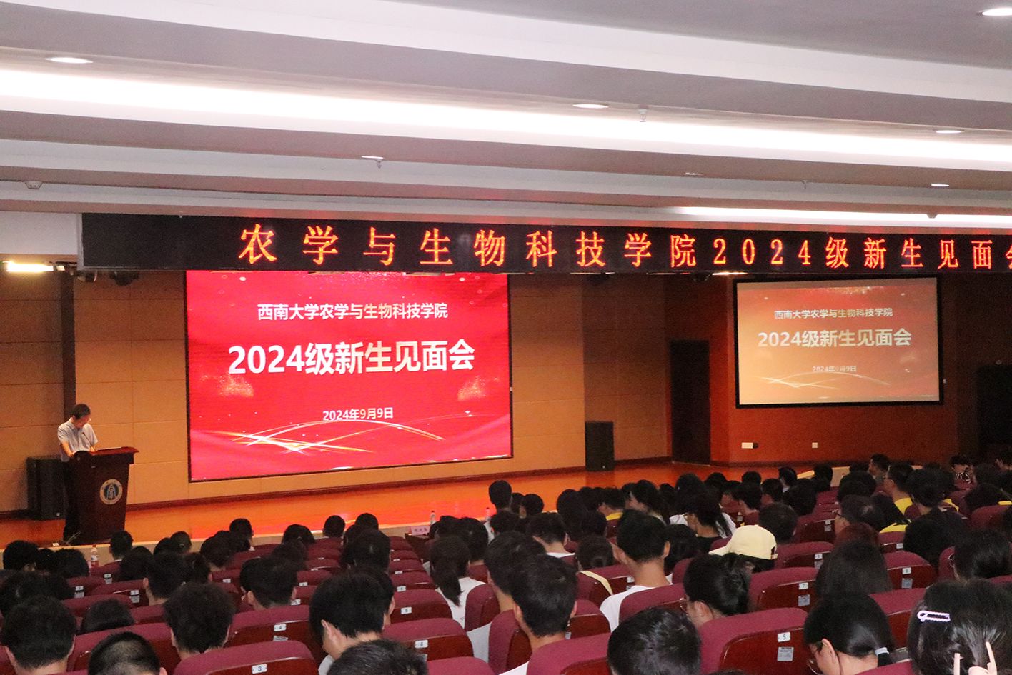 2024级新生见面会在隆平楼404报告厅隆重举行。学院党委书记阳义健、院长吕典秋、党委副书记郑莉佳、副院长张建奎、副院长曲存民、各系主任、各办公室负责老师、全体辅导员以及2024级班主任出席了见面会,会议由副院长张建奎主持。院长吕典秋教授围绕学院办学历史、专业建设、师资力量、科技创新、人才培养等方面,向新同学们做了详细介绍,希望同学们牢记“追梦求实”的院训,加强专业认同,努力学习、勤于实践,做学农爱农知农的新农科人才。教师代表范艳华教授在发言中告诫同学们进入大学不要放松,加强自律,培养良好学习习惯。2022级硕士研究生王舒心同学用自己的奋斗历程鼓励新同学们奋发向上、不气馁、不懈怠,通过学院为我们搭建的平台在专业领域发出最强音。2024级植物科学与技术专业张瀚予同学作为新生代表发言,她的字里行间充斥着对大学生活的憧憬,并表示要在未来的学习生活中会更加勤奋努力,以梦为马,不负韶华。最后,学院党委书记阳义健老师讲话,号召同学们要坚定理想信念,厚植爱农情怀,要崇尚科学创新,练就兴农本领,要秉持坚毅品格,勇担强农使命,将个人目标融入中华民族伟大复兴的中国梦,为我国农业科技现代化贡献青春力量,用青春的能动力和创造力书写“新农人”的时代宣言。同时,他寄语同学们,学会做人,修身立德;学会独立,融入大学;学会学习,勤学善思;学会生活,快乐成长,在edddh