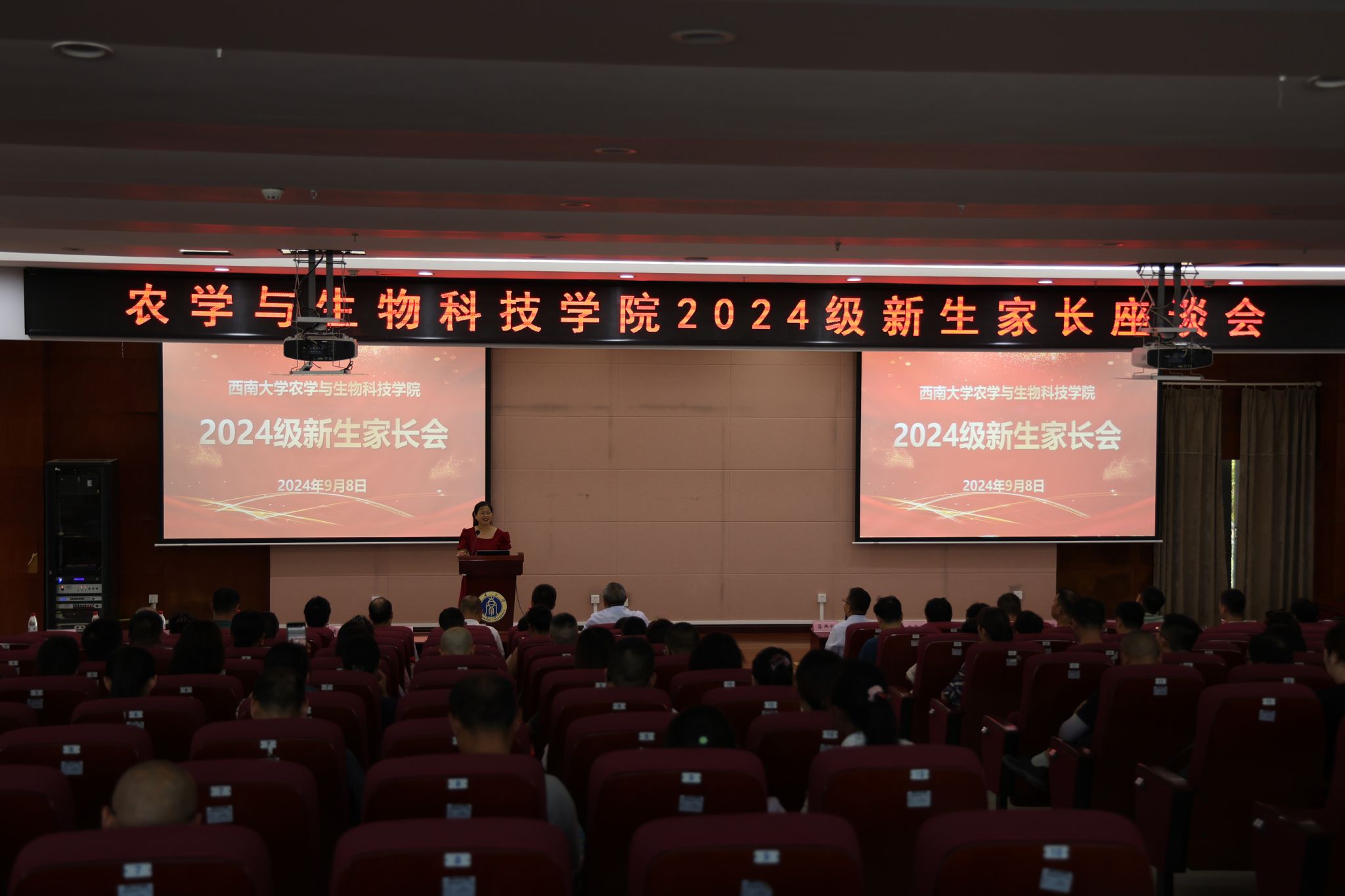 2024级新生家长座谈会在隆平楼204报告厅隆重举行。学院党委书记阳义健、院长吕典秋、党委副书记郑莉佳,副院长张建奎、各系主任、教学办公室主任、2024级辅导员及各班班主任出席了见面会,会议由党委副书记郑莉佳主持。在《我有一个梦》的优美旋律中,新生家长们陆续步入会场。党委副书记郑莉佳向新生家长逐一介绍出席座谈会的领导嘉宾并代表学院向家长们的到来表示热烈的欢迎。院长吕典秋从学院的办学历程、师资队伍、学术科研、人才培养、毕业生就业情况等方面,向新生家长们做了全面而详细的介绍。辅导员王皓老师就学生住宿、学校生活、学生可能遇到的机遇与挑战、家长遇到的常见问题等方面进行了指导,希望家长可以做好学生坚强的后盾,做到倾听、理解、支持、信任。同时也针对学生学业管理、安全教育等重要事项进行了沟通与说明。会议最后,学院党委书记阳义健讲话,希望大一新生入学后,珍惜宝贵时光,积极面对生活环境、人际环境、经济环境和学习环境的变化,向学院的研究生党员标兵、创新创业大赛金奖获得者等优秀学长学姐看齐。同时,他表达了对家长信任的真切感谢,希望未来加强家校协同育人机制,共同培养“德智体美劳”全面发展的新农人。