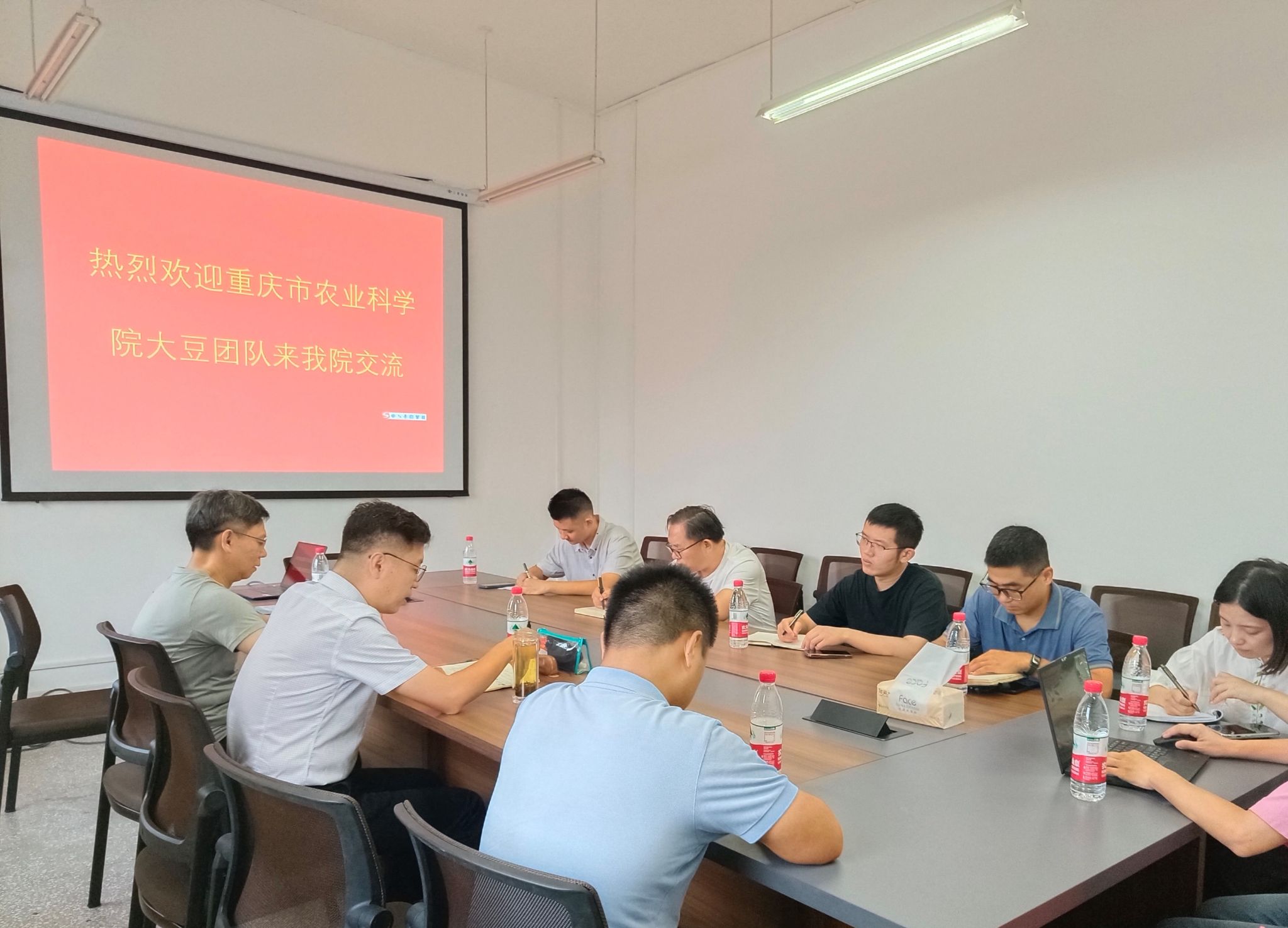 为更好推进我院大豆研究所与重庆市农科院豆类创新团队的合作与交流,2024年9月29日,重庆市农科院豆类首席专家杜成章研究员一行来到学院座谈交流,我院大豆研究所易泽林、罗明等相关工作人员参加了座谈交流。