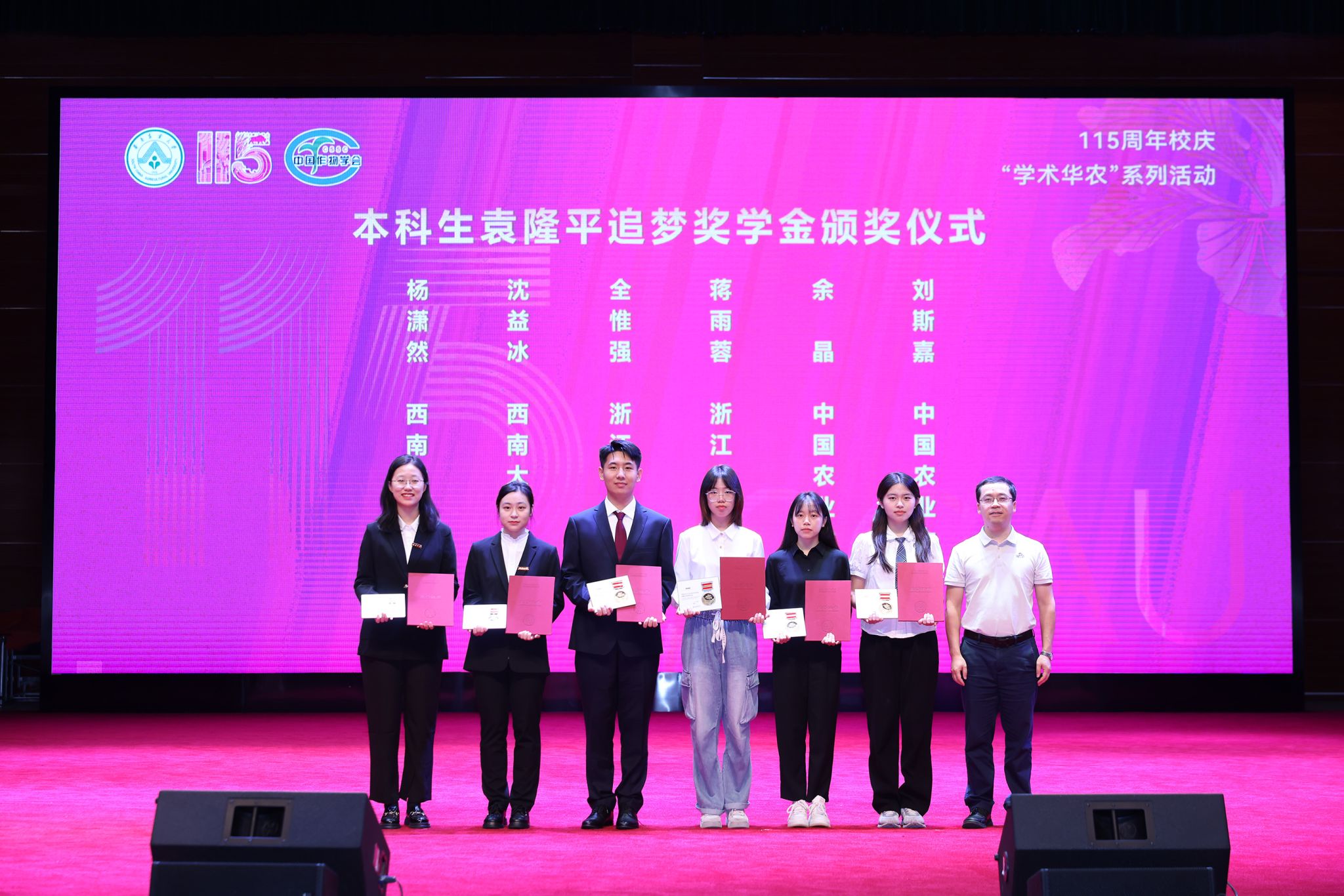 作为“袁隆平追梦奖学金”的9所参评院校之一,此次共有4名学子荣获奖励,分别是2022级博士研究生胡冉,2022级硕士研究生杨凯悦,2021级本科生沈益冰和杨潇然。