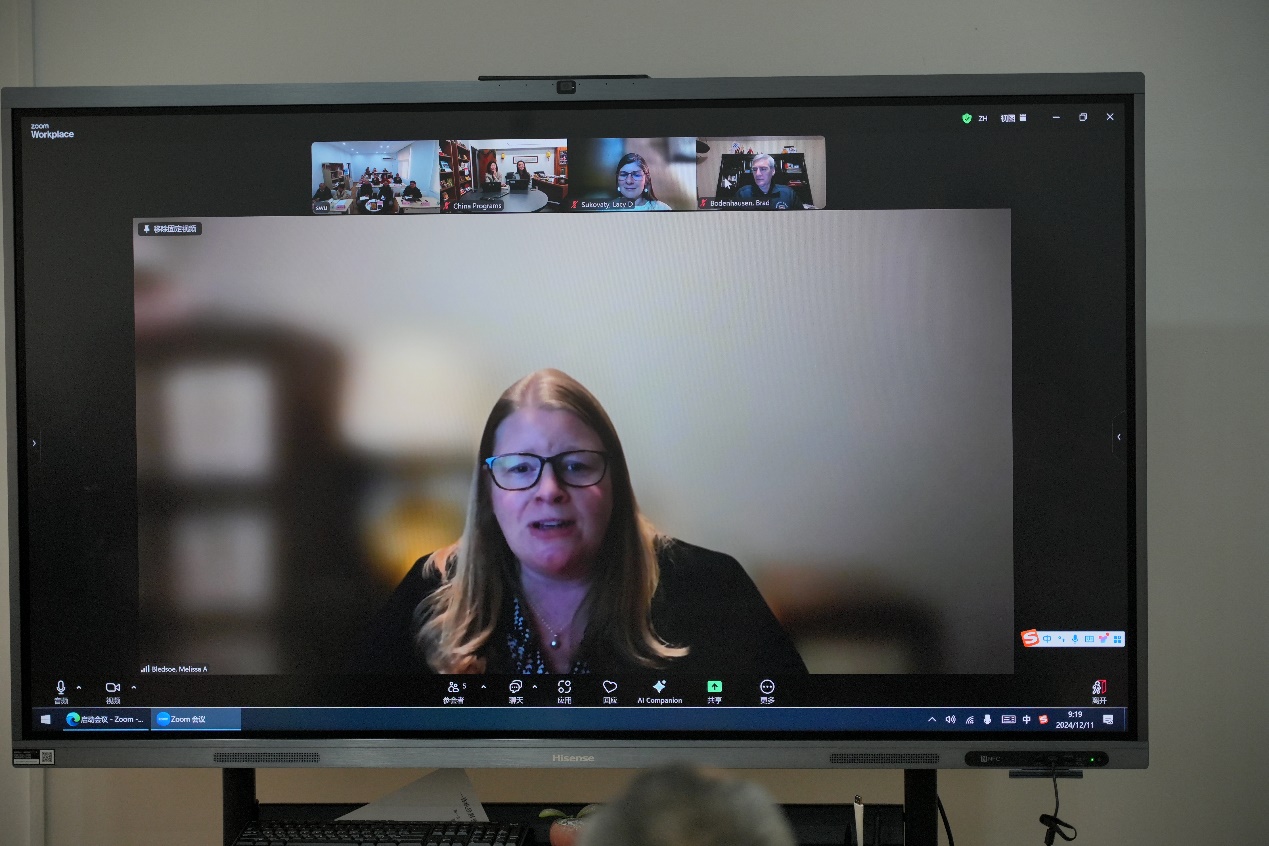 为了进一步加强与密苏里州立大学(MSU)的交流与合作,2024年12月11日,学院领导及合作办学项目相关教师团队在棉研楼301与MSU新任领导团队举行了线上会议。参会人员包括MSU副校长Brad Bodenhausen、中国项目办公室主任Dandan Liu、中国项目专员Jinzi Fan、农业学院新院长Dr. Melissa A. Bledsoe、国际教育专员Kevin James,以及学院党委书记阳义健、院长吕典秋、副书记郑莉佳、副院长张建奎、植科专业负责人杜海、中外合作办学办公室主任刘志斋、农生院教学工作办公室主任徐鑫、植科共课老师及中外合作办学办公室全体成员。会议由中外合作办学办公室主任刘志斋主持。