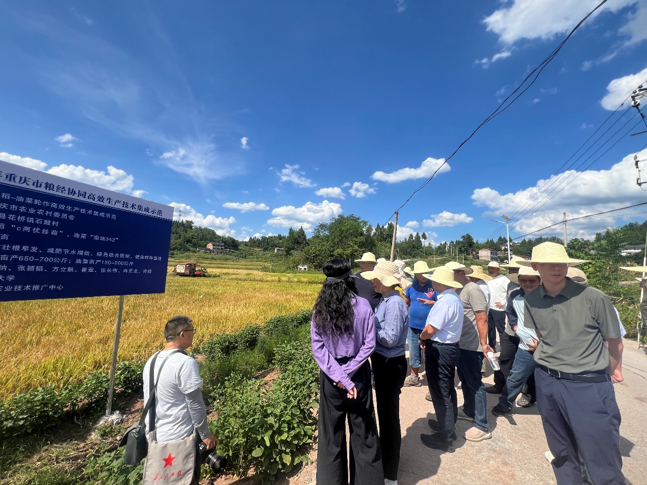 自主选育的短生育期油菜品种渝油342,以缓解水稻移栽与油菜收获茬口衔接上矛盾,扩大稻油轮作种植面积,实现水稻和油菜良种良法配套,农机农艺结合,形成在同类型区域可复制推广的稻油轮作高产高效栽培技术体系。秦大海强调要将成熟的稻油轮作技术模式向周边农户推广,助力粮食增产、农户增收,为保障粮食安全提供有力支撑。