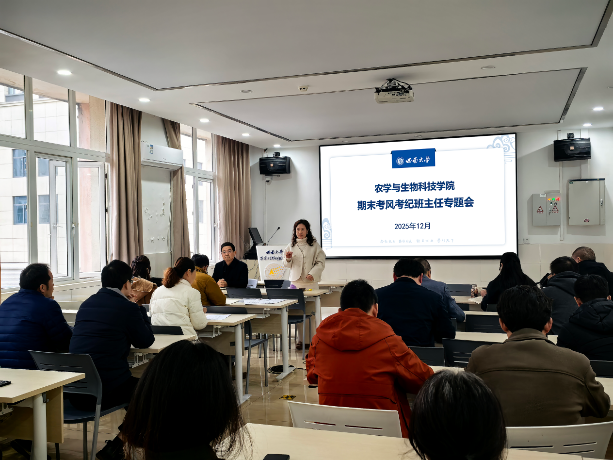 为深入落实立德树人根本任务,进一步促进学风建设,严肃考试纪律,营造风清气正、严谨求实的育人环境,12月11日,学院召开期末考风考纪班主任专题会议。会议围绕“以考风促学风,以诚信固底线”主题,对期末阶段的考务管理、诚信教育及安全防范工作进行全面部署。学院党委副书记刘秋艳、教学副院长张建奎、教学管理人员、辅导员及全体班主任参加会议。