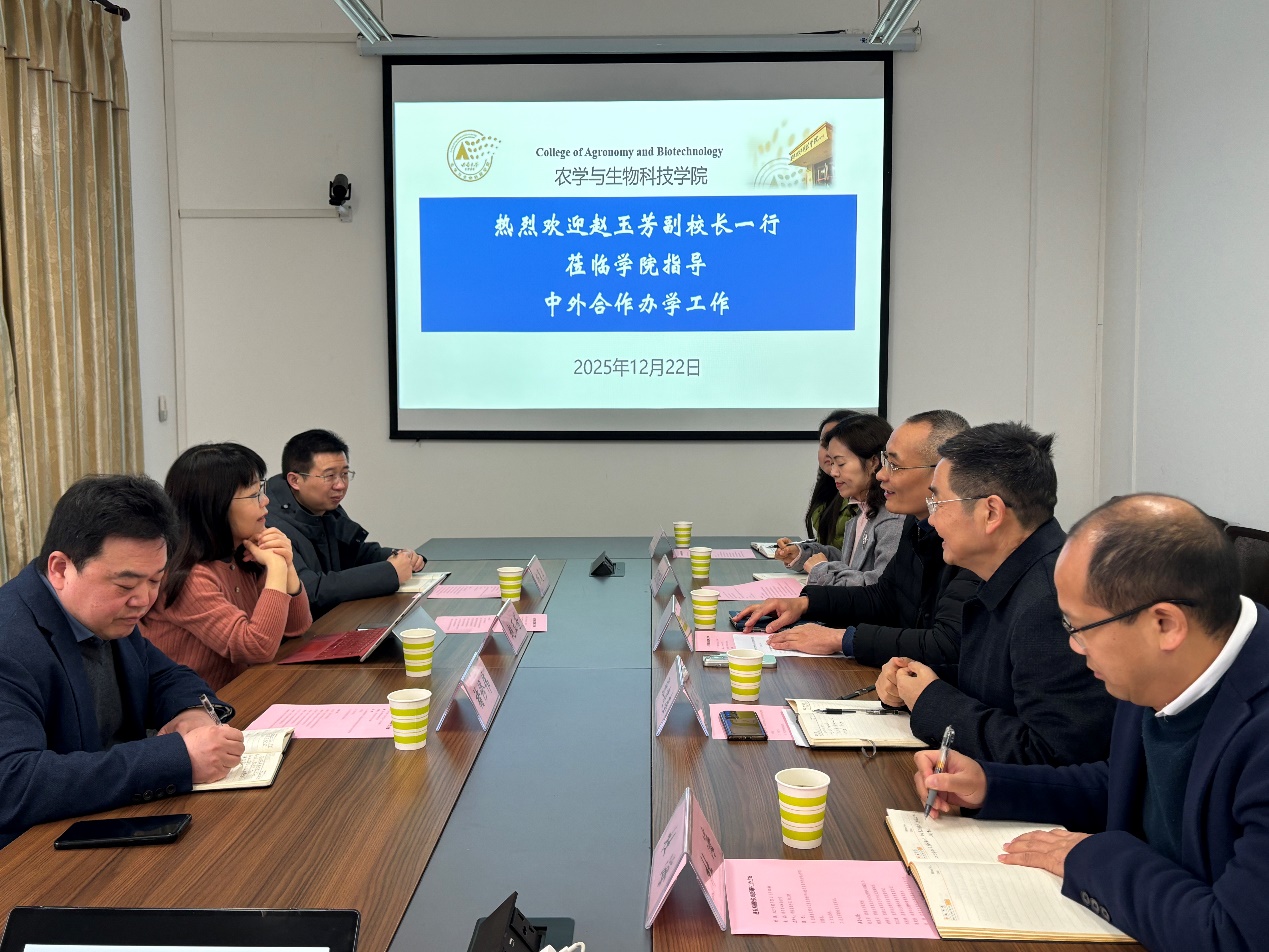 ,就植物科学与技术专业中外合作办学项目开展专题调研。学校国际合作与交流处副处长褚修伟、党政办公室法律事务部副主任杨复卫随同调研。调研座谈会在棉研楼406会议室举行,由学院党委书记阳义健主持。学院党委副书记刘秋艳、副院长张建奎、植物科学与技术系主任杜海、辅导员代表高荣蓉及中外合作办学办公室张颖溢参加座谈。