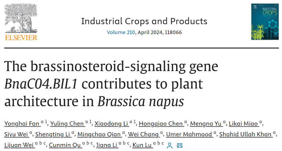 油菜生物学创新团队近期连续在植物学领域一区TOP期刊发表研究成果(Plant Biotechnology Journal 1篇、Industrial Crops & Products 2篇,英文著作1篇),揭示了油菜产量性状复杂的调控机制。