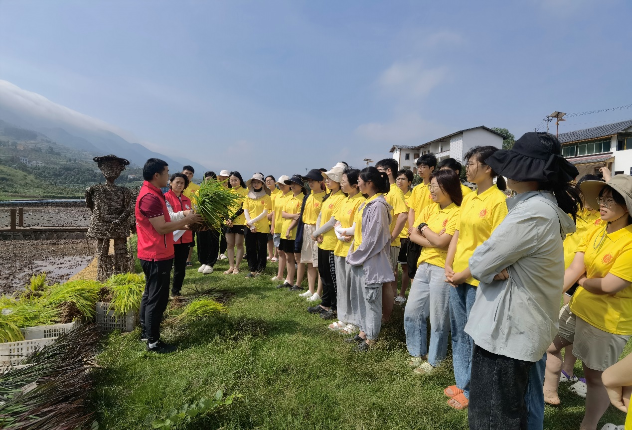 随后,同学们认真观看学习指导教师的插秧操作示范,并分成不同小组进行实践操作,体验插秧的乐趣。插秧结束后,同学们还开展了文旅研学助力乡村振兴专题调研。
