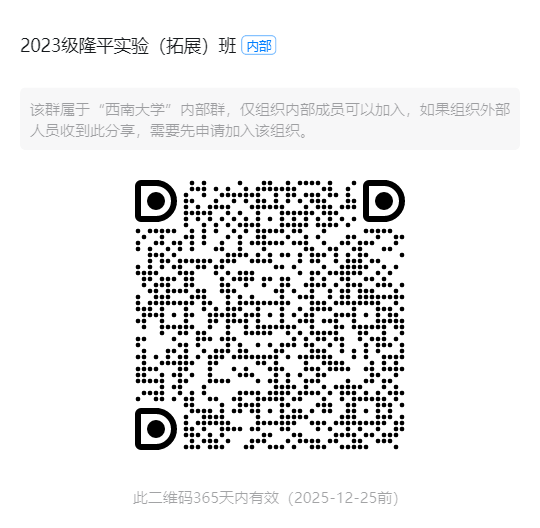 请获得立项的学生扫码加入2023级隆平实验(拓展)班级钉钉群。