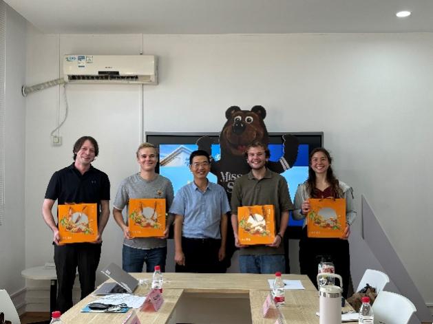 工作期间的感受,同时就教学过程中可能遇到的问题等与张院长及共课组成员展开深入交流,现场氛围热烈融洽,进一步拉近了彼此的距离。学院代表向 4 位外教赠送了精心准备的中秋礼物,以此表达学院对外教的节日祝福与关怀,祝愿各位老师在学院工作顺利、生活愉快。