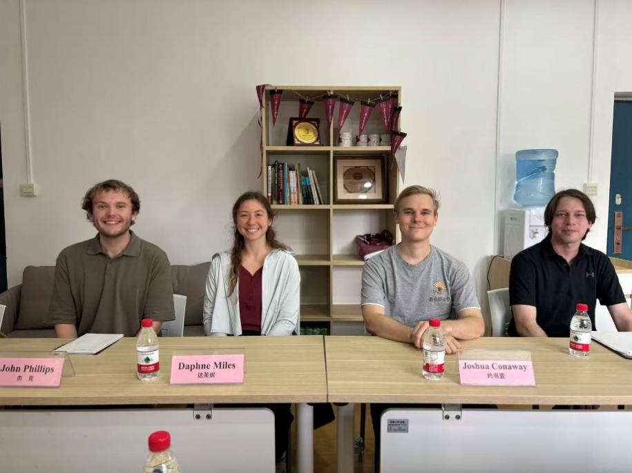9 月 24 日,学院中外合作办学办公室在棉研楼 301 会议室召开外教见面会,旨在搭建沟通桥梁,明确教学要求,助力外教快速融入学院教学与生活,为中外合作办学项目保驾护航。英语课外教Joshua Conaway、Daniel Baird、Daphne Miles、John Phillips,学院副院长张建奎、共课教师组组长张凯、英语共课教师万华方和蒋锐参与会议,会议由蒋锐主持。