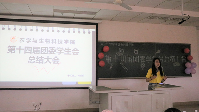 在主持人依次介绍与会的领导及嘉宾后,学生会各部门开始依次进行述职报告,以PPT的形式对一年以来的部门工作成果、工作不足和部门未来展望进行了系统且详细的汇报,同时还加入了部门专职特色活动、部门成员的生动介绍以及部门团建沟通等具体报告。各部门各式各样的汇报,让大家看到一个多元的、全能的、团结的、上进的农生院学生会大团体。