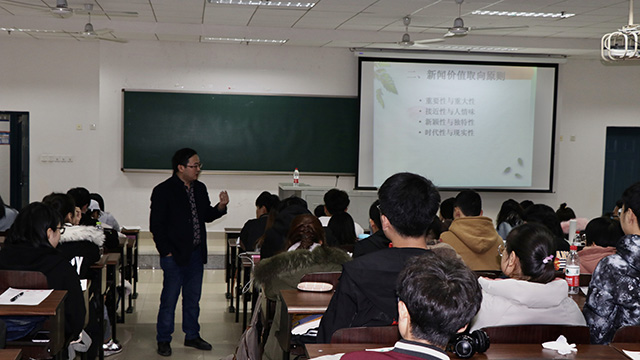 第六期团校培训班第三次理论讲座于2018年12月1日晚上7点在35教518举行。校工会副主席郑劲松老师应邀做“新闻特点及消息写作”专题讲座。edddh