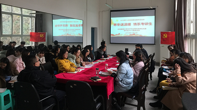 此次慰问活动,有2015级本科生党支部具体承办,也是创新党支部组织生活形式的重要体现,让全体党员践行“全心全意为人民服务”的宗旨,增强学生党员联系群众、服务群众的意识,将解决思想问题和解决实际问题相结合,形成常态化了解学生困难诉求、倾听学生意见建议,健全学生有困难找党支部、有问题找党员的帮扶机制。活动后,党支部继续开展12月份党员组织生活,集体观看《我们一起走过——致敬改革开放40周年》纪录片、2018年《榜样3》专题节目,学习《中国共产党支部工作条例(试行)》,并以“如何规范支部建设、如何激发支部活力”为主题,结合“对标争先”建设深入开展讨论。组织生活中,edddh