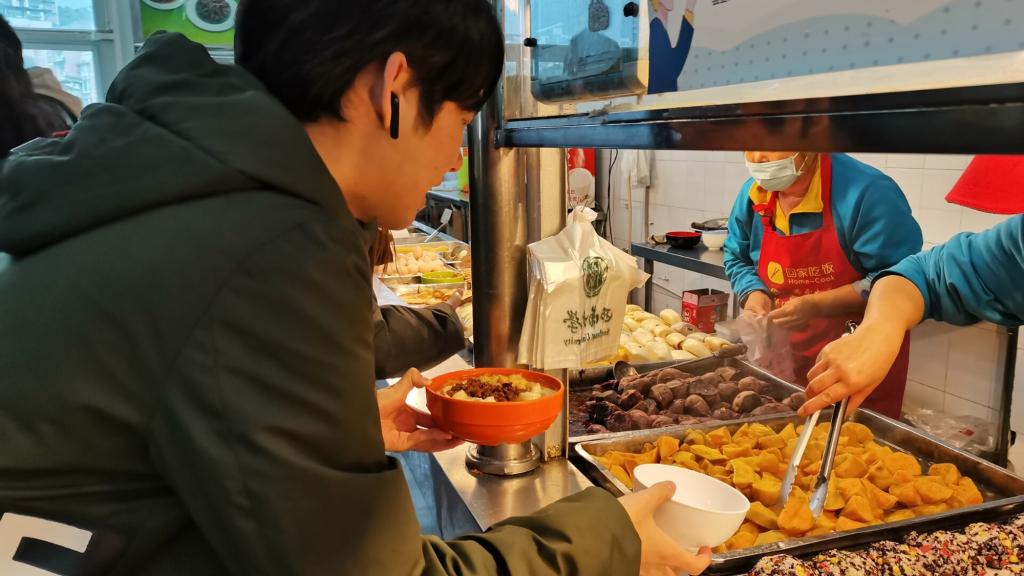 11月21日,学院师生在校内南区樟树林进行甘薯科普知识宣传及专业学生生产实践劳动场景照片展,参与答题的同学可以免费领取烤好的红薯。即便下着大雨,香喷喷的红薯依旧吸引了不少同学前来围观。11月22日,教务处、学院与后勤集团膳食中心衔接,在全校学校7个学生食堂和2个教工食堂开设专门的免费品尝窗口,分别于早餐、午餐和晚餐时段,将同学们收获的三个品种约2000斤甘薯蒸熟免费供全校师生品尝。早上7点多,edddh
