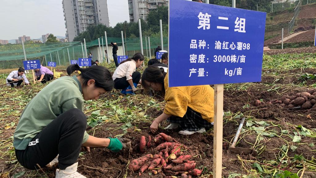 农学专业学生《作物生产实践》课程种植的甘薯喜获丰收。为分享学生专业实践教育与劳动教育的成果,2021年11月21日-22日,在学校教务处组织下开展“青春‘薯’农,劳动暖冬”主题活动,包括甘薯知识科普宣传、甘薯免费品鉴、专业课程实践教学与劳动教育成果展示。本次分享的主要劳动成果是学院2019级农学专业学生在《作物生产实践》课程中所收获的甘薯——渝红心薯98号、渝红心薯4号和渝紫香10号。这三个品种由薯类生物学与遗传育种重庆市重点实验室选育,其中渝红心薯98号、渝紫香10号入选全国“三峡杯”十大好吃薯。