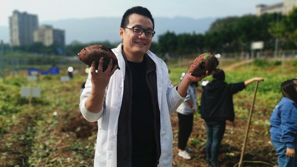 2019级隆平班学生严庆谈到实验课中最困难的事时回忆,“但看着这么多人吃自己种的红薯,通过答题来领取烤红薯,还是很开心的”。