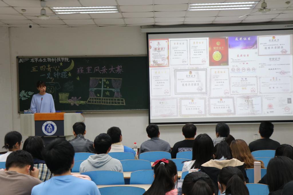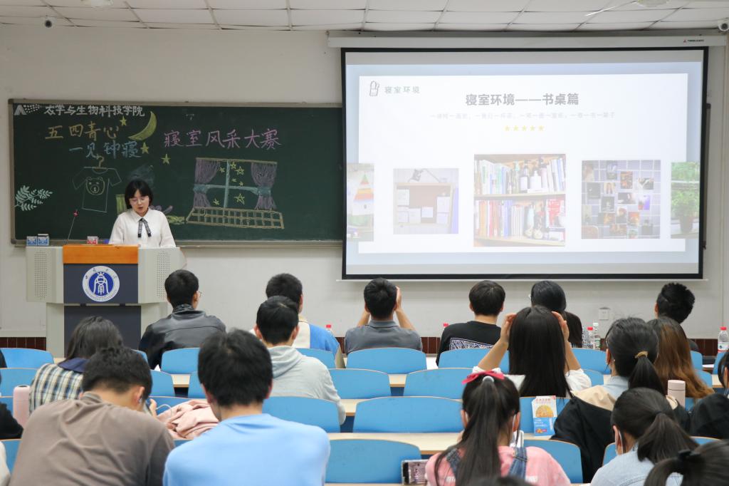 团委学生会于5月14日晚19:00在32教学楼312教室举办以“五四‘青’心,一见钟‘寝’”为主题的寝室风采大赛决赛。